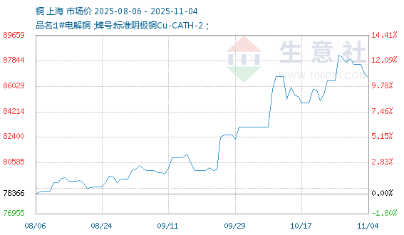 11月4日生意社铜基准价为86941.67元/吨